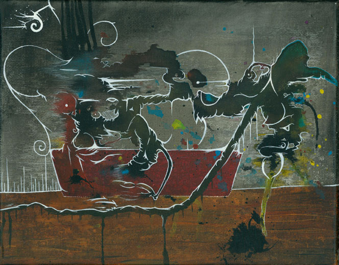 Acrylic, Watercolor, Gesso and India Ink on Canvas
