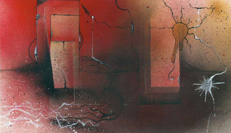 Spray Paint, Acrylic and India Ink on Matte Board