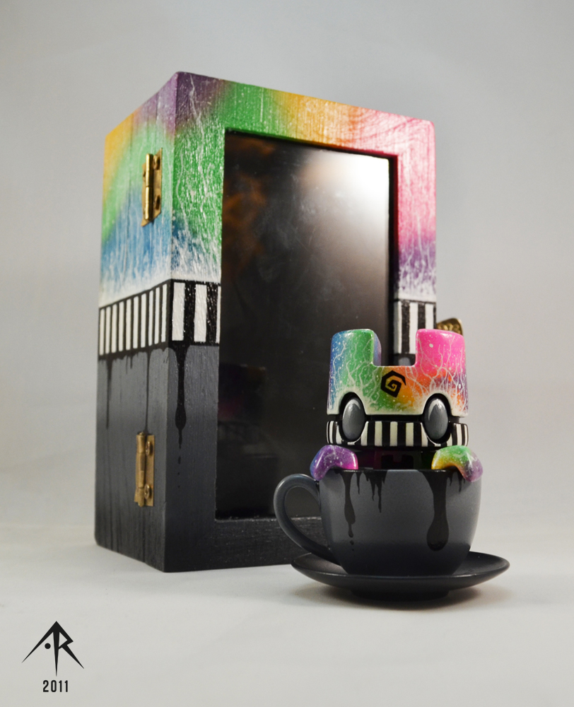 With handpainted wooden box.